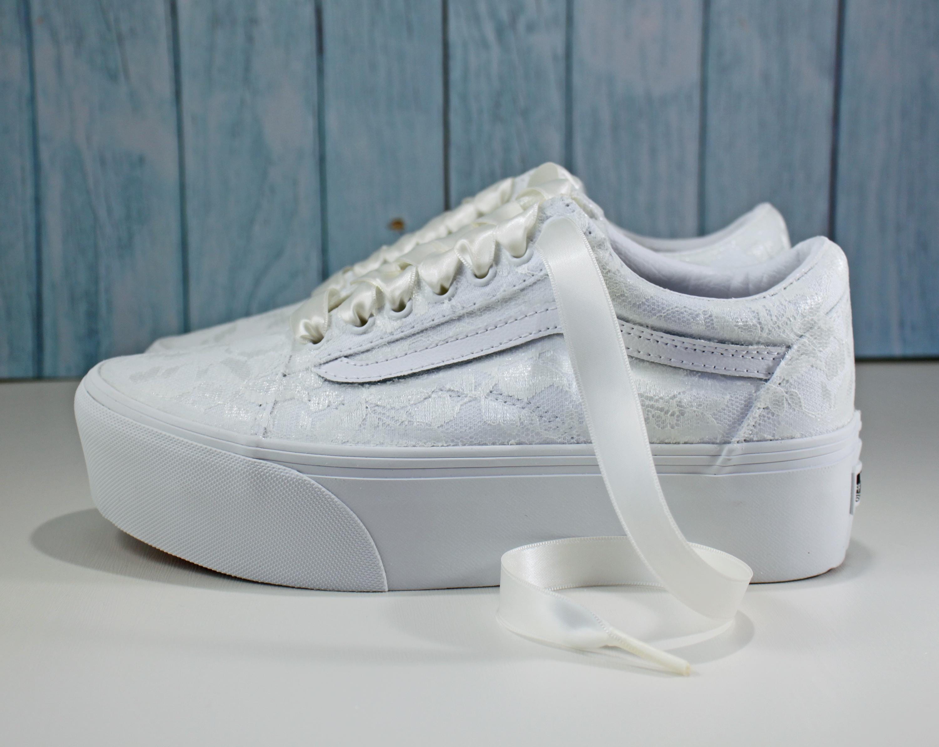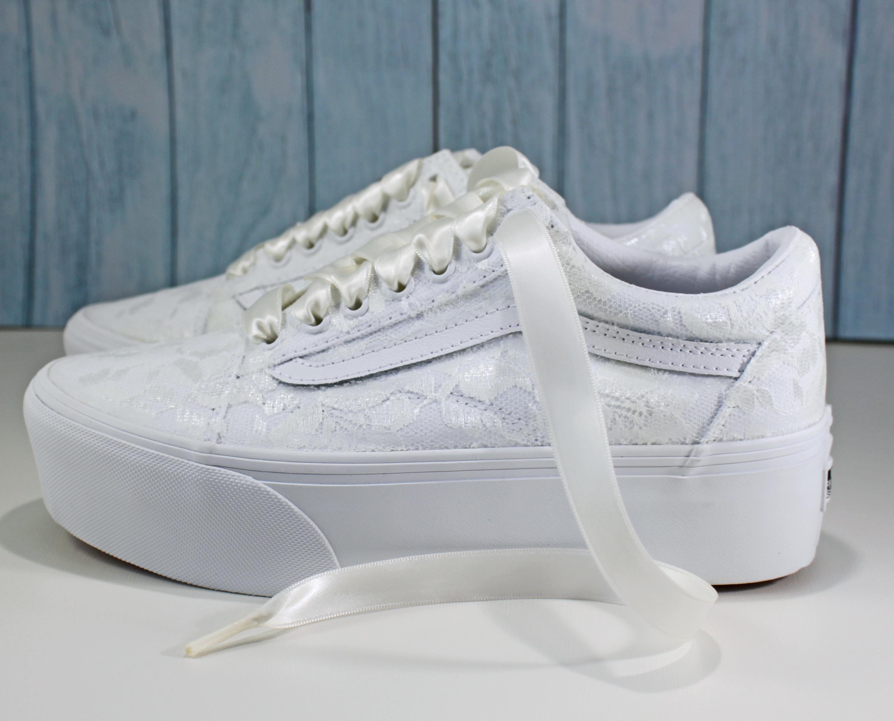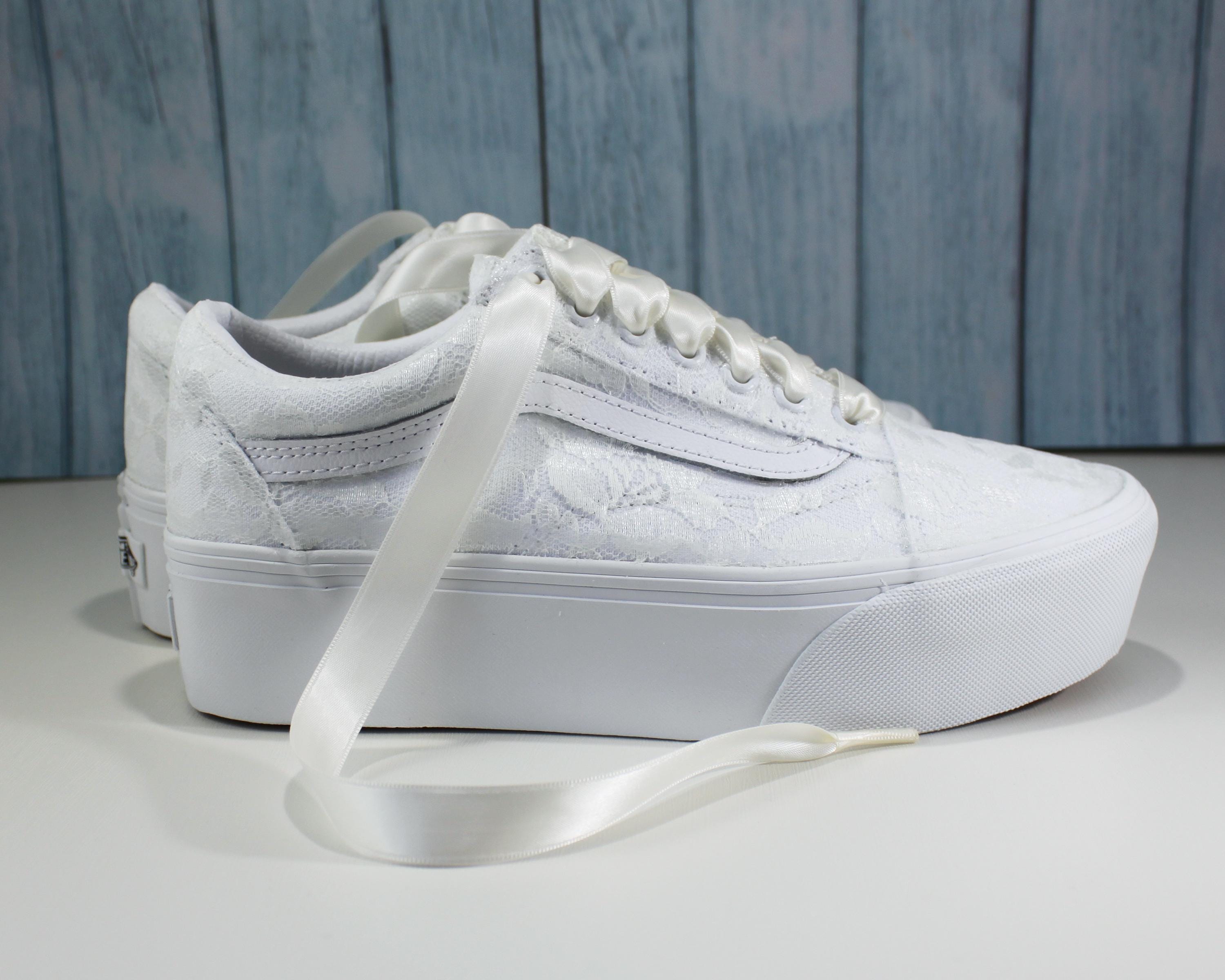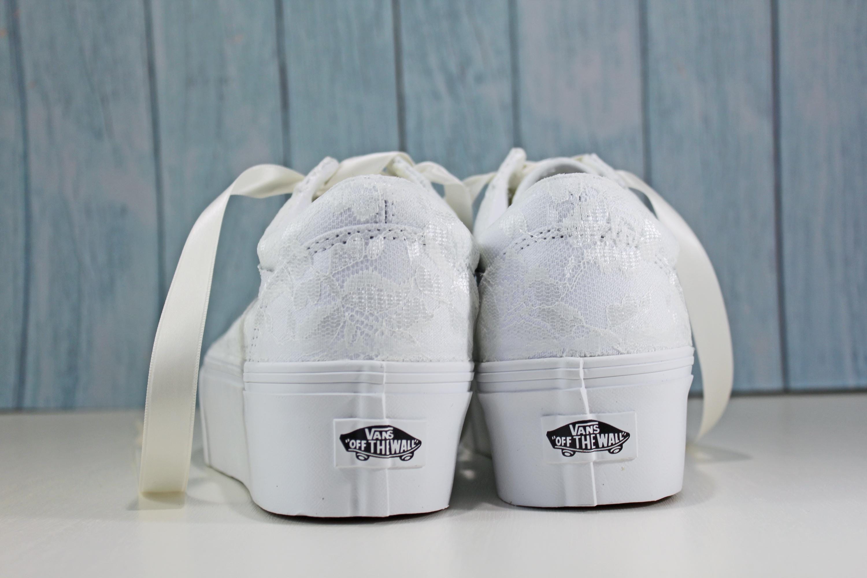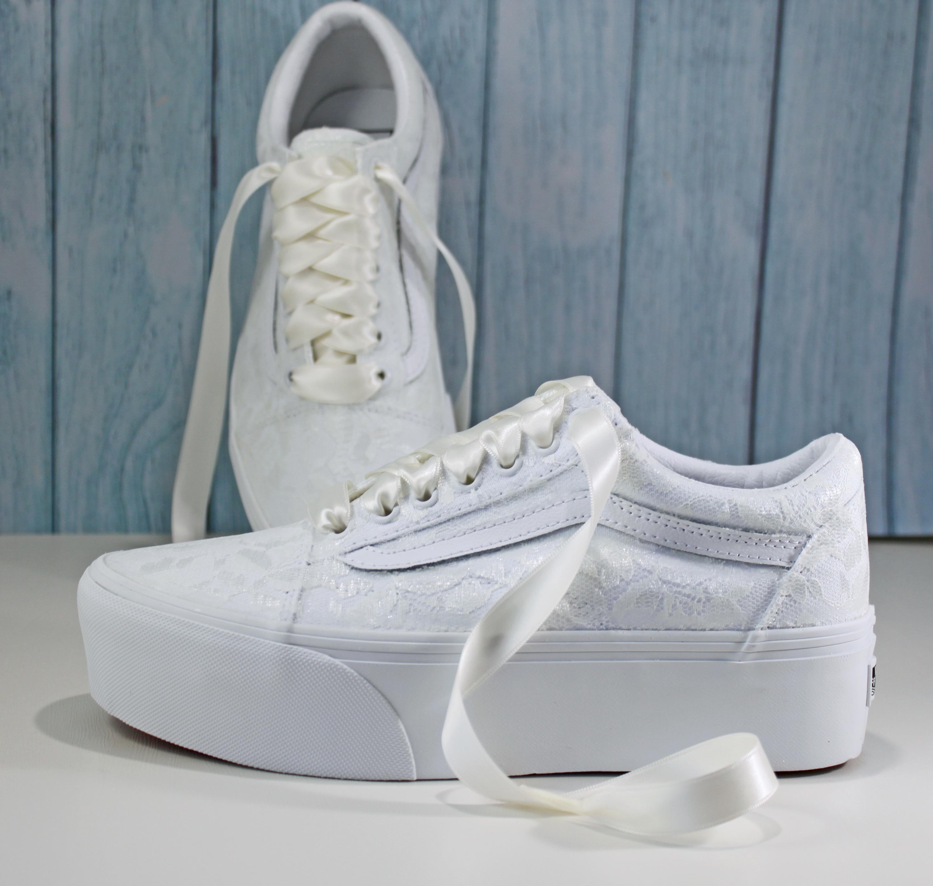 Skip down the aisle in comfort in these beautiful ivory lace Vans!