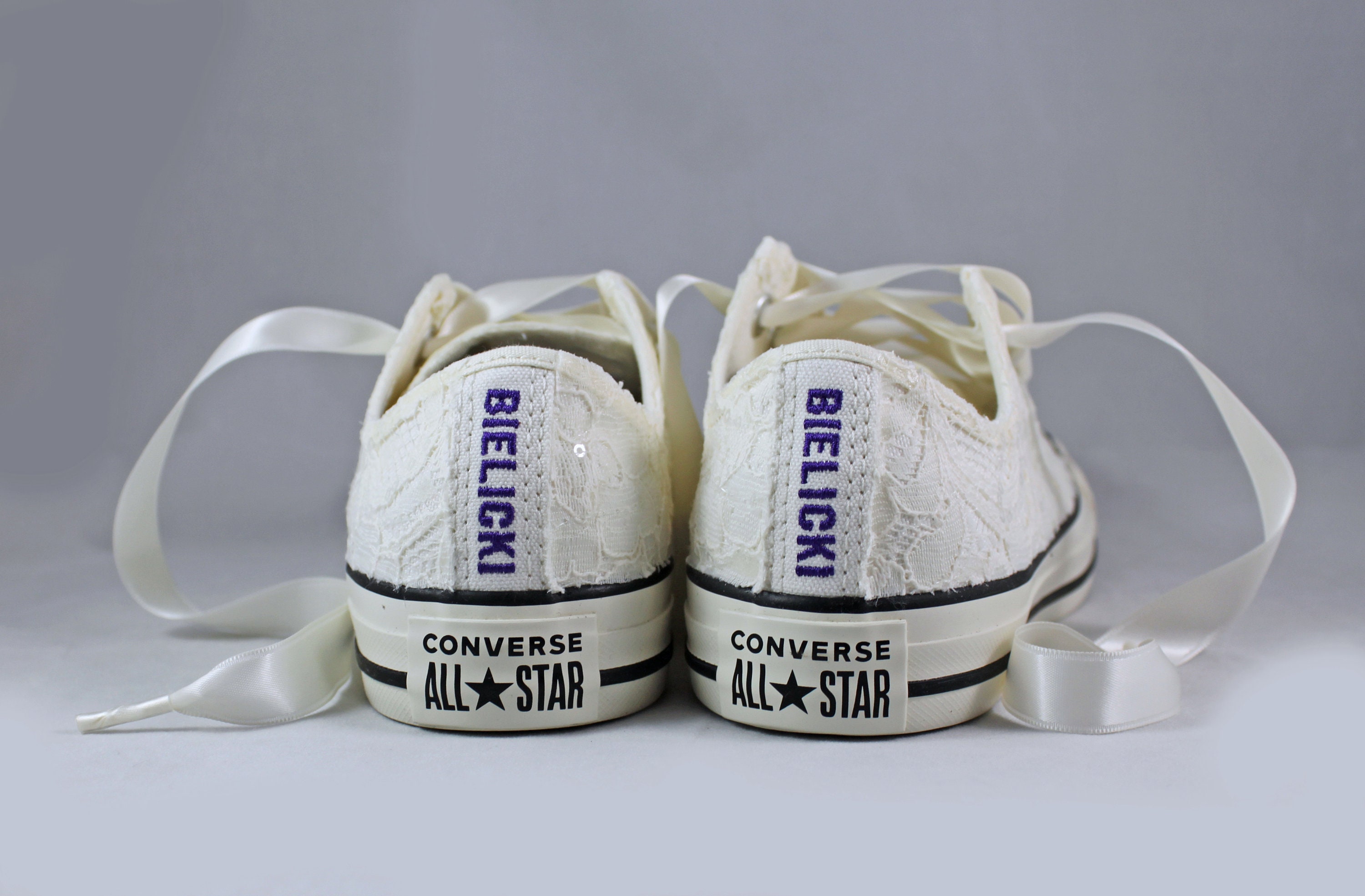 Ivory Bridal Converses Egret Ivory Sequin Lace -- Custom Name Converse -- Wedding Tennis shoes - Wedding Converse