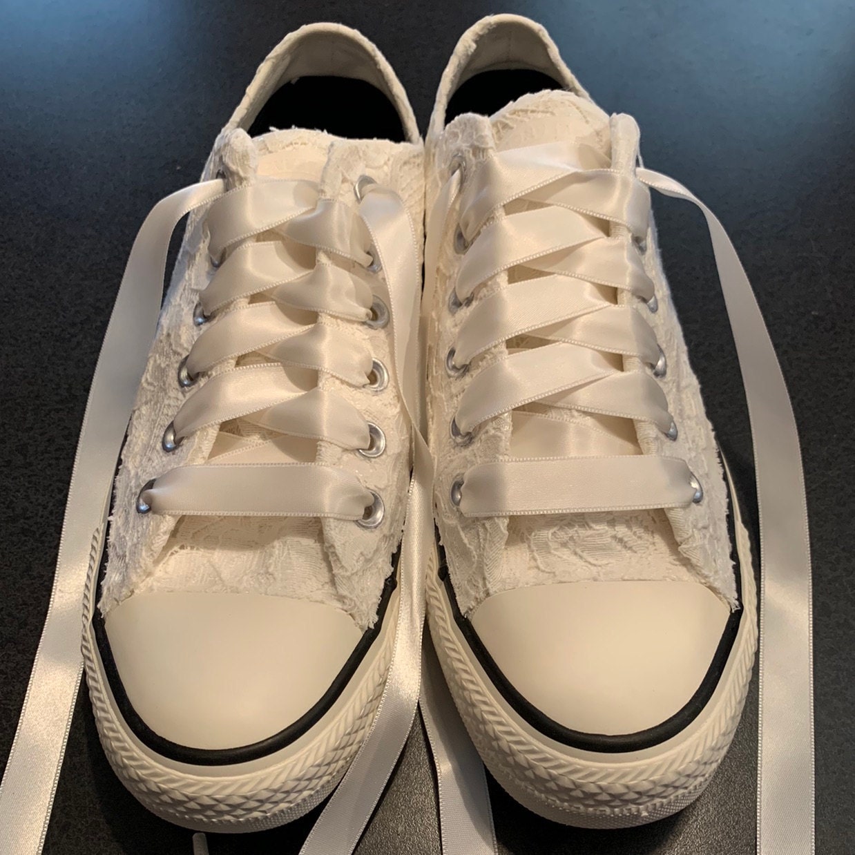 Skip down the aisle in comfort in these beautiful Ivory lace Converses!